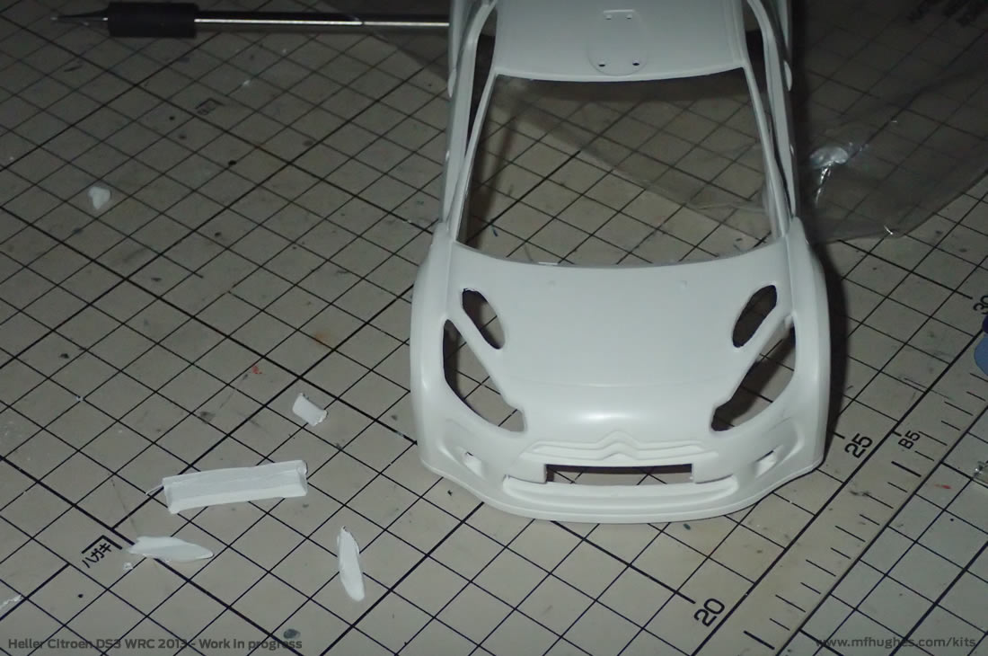 The kit lacks a lot of detail - in particular the underbody and suspension is very very simplified and anything related to engine or transmission is absent. The fit and assembly of the roll cage is poor though buildable with some hassle. There's some moulding cleanup to be done and some ugly ejector pin marks on the seats. The instructions are not very clear in parts and do have some errors in both painting and decal numbering. The wheels and tyres seem not wide enough to the real car, and the tyres are a little plasticky. The flappy box is kind of annoying. And then there's the decals.. which are good decals and go on well. But there are a lot of them and there's a lot of decal softener and patience invovled. Not Hellers fault but it's a con if you don't like that kind of thing.
