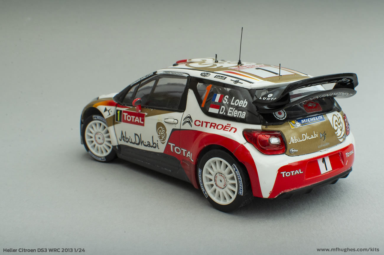 The Abu Dhabi Citroen DS3 would be in my personal top 10 rally car livery/car shape combos, even though it's not an especially well remembered one and lost in the long Sebastian period of the WRC. At the time I bought this Heller kit it was long out of production but eventually the 2012 Red Bull version cropped up on Ebay from a seller in France (appropriately for a French kit of a French car), auctioned along with the 2013 Abu Dhabi decals. Heller have since decided to reissue the kit, sans decals. Certainly for less than I paid. 3 sets of number and driver/co-driver decals are included but given the overall French-ness of the thing, it would be wrong to give it to anyone except Loeb, so number 1 it is.