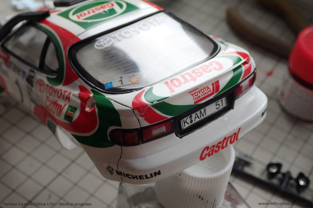 Perfect fitment and shape, as usual from Tamiya. The kit is the same moulds as Tamiya's '92 Safari Celica so you get those safari parts in this kit for free. Like the Tamiya Porsche 959, this kit seems to be in constant production and just like the 959, is a cheap buy and easy to find.